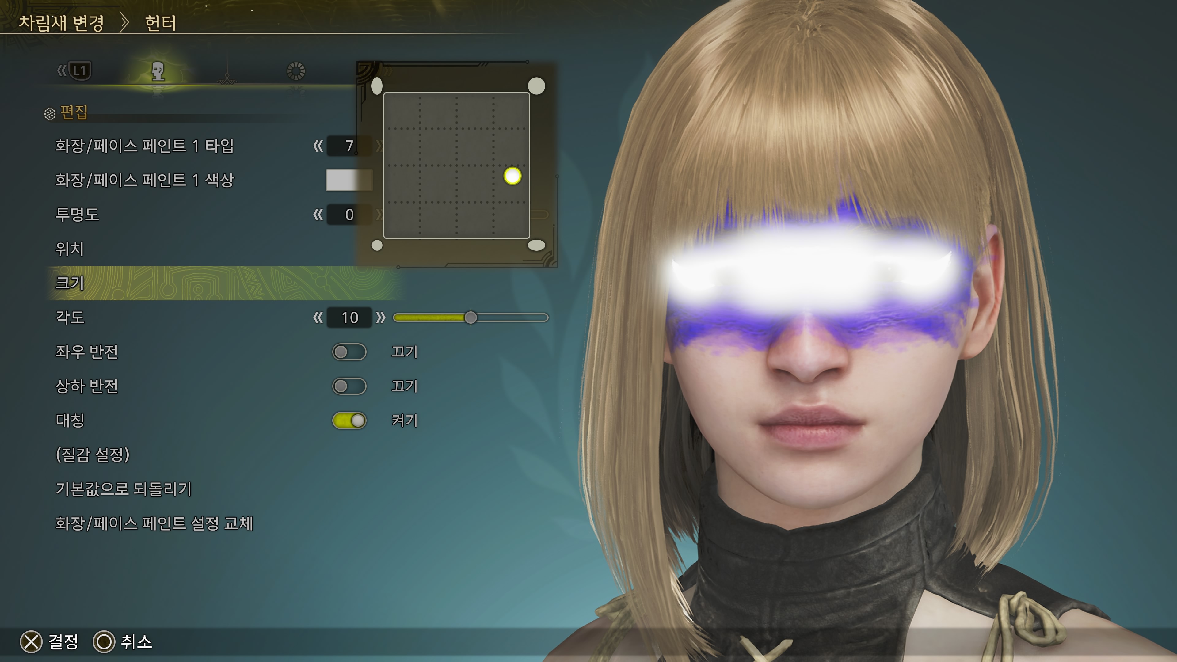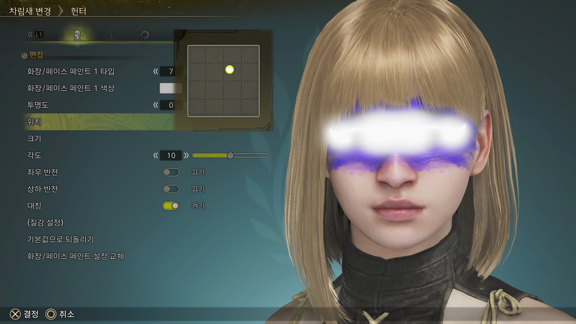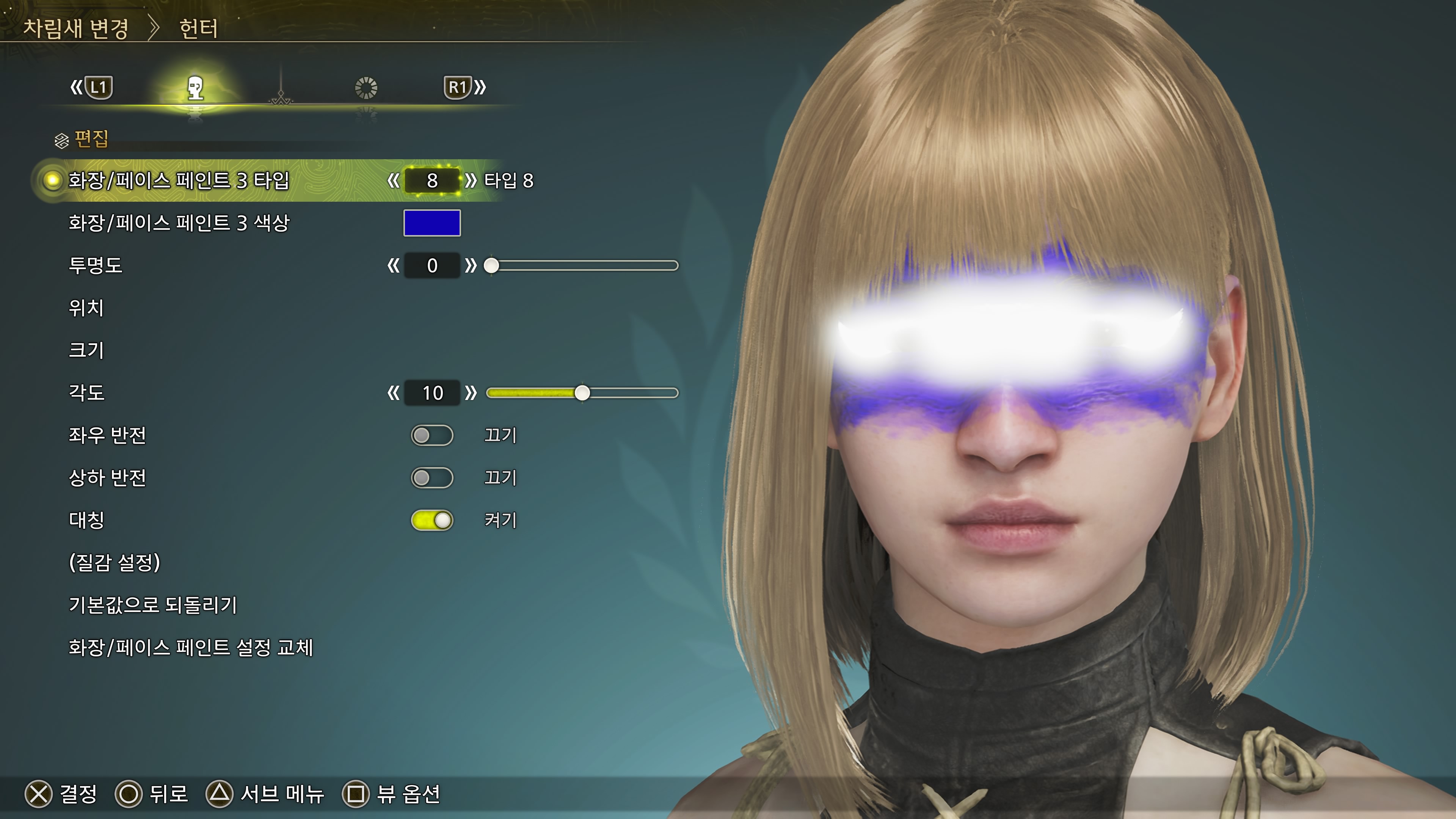 ➡️ 커마 메이크업 변경 후 (건담 '샤아' 안광 및 마스크)